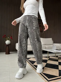 Джинсы трубы широкие леопардовые
