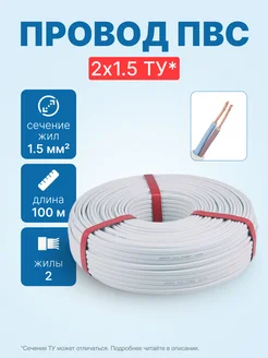 Провод ПВС 2х1.5 ТУ, бухта 100м