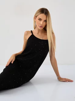 Платье блестящее вечернее на бретельках