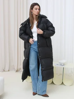 Пуховик женский зимний длинный оверсайз с капюшоном