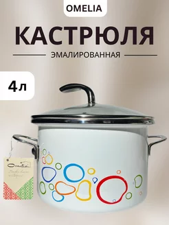 Кастрюля эмалированная 4 л с жаропрочной крышкой для плиты