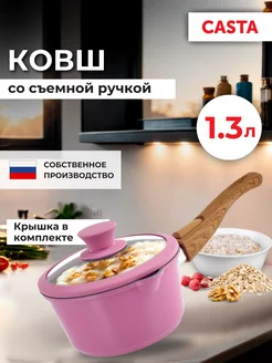 Ковш кухонный с крышкой 1,3 л толстым дном антипригарный
