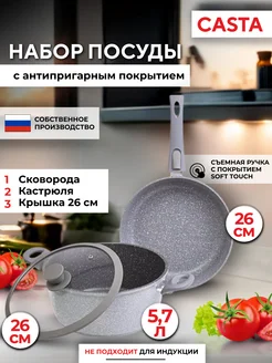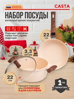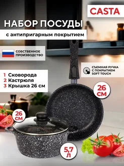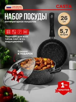 Набор посуды антипригарной сковорода кастрюля с крышкой