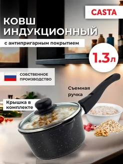 Ковш для индукционной плиты кухонный 1,3 литр с крышкой