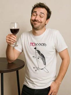 Футболка хлопковая с принтом и надписью "ПОхухоль"