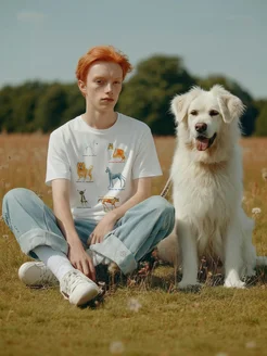 Футболка хлопковая с принтом и надписью "Собачки"