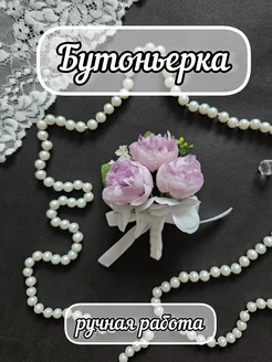 Бутоньерка три пиона сиреневые