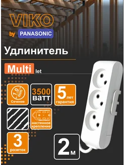 Удлинитель 3 розетки 2 метра без защитных шторок