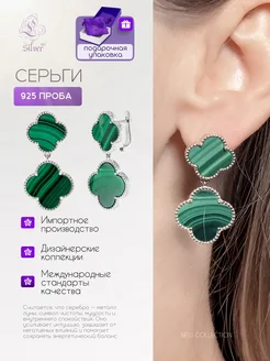 Серебряные двойные серьги с клевером (Van Cleef)