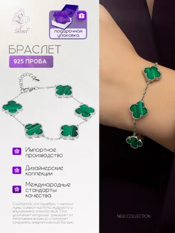 Серебряный браслет с малахитом - клевер (Van Cleef)