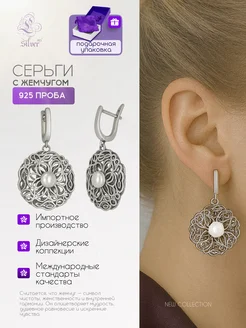 Серебряные европейские серьги с жемчугом