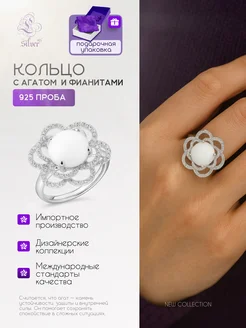 Серебряное кольцо с агатом и фианитами