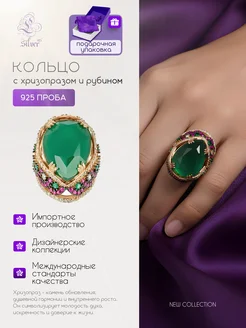 Серебряное кольцо с хризопразом и рубином