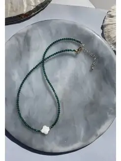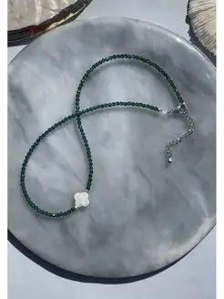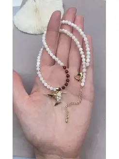 Колье из перламутра с гранатом и кулоном в виде птицы