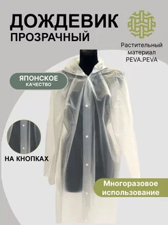 Плащ дождевик прозрачный для курьера, рыбалки, прогулок
