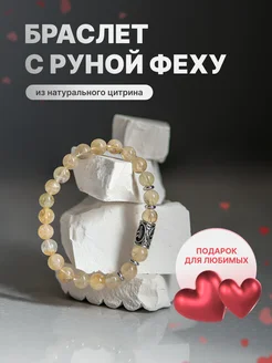 Браслет из натуральных камней женский (цитрин и руна Феху)
