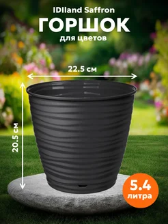 Горшок для цветов Saffron D225мм 5,4л с поддоном черный