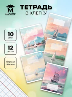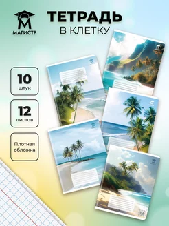 Тетрадь 12 листов,клетка "Лазурное море", белизна 100%