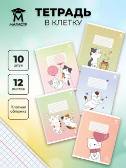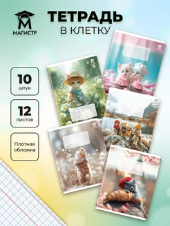 Тетрадь 12 листов,клетка "Милые котята", белизна 100%