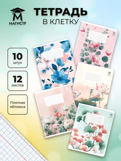 Тетрадь 12 листов,клетка "Цветочный узор"