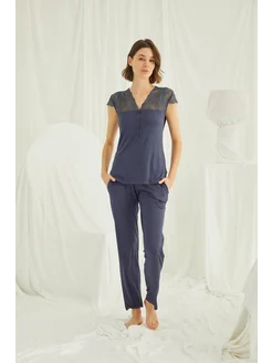 Ночная сорочка с глубоким вырезом и кружевными бретелями