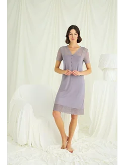 Ночная сорочка с коротким рукавом и кружевным воротником