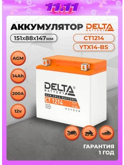 Аккумулятор для мотоцикла DELTA CT 1214 12v 14Ah YTX14-BS