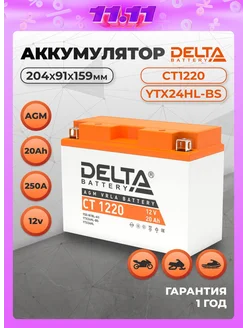 Аккумулятор для мотоцикла DELTA CT 1220 12v 20Ah YTX24HL-BS