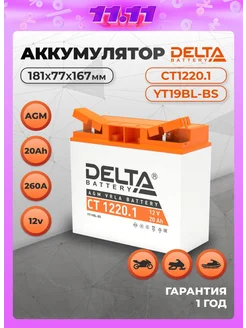 Аккумулятор для мотоцикла DELTA CT 1220.1 12v 20Ah YT19BL-BS