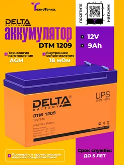 Аккумулятор 12 В 9 Ач, аккумуляторная батарея DTM 1209