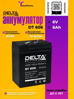 Аккумулятор 6В 6Ач, аккумуляторная батарея DT 606