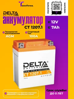 Аккумулятор для мотоцикла AGM, 7Ач 12В CT 1207.1