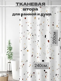 Широкая штора для ванной тканевая 240х200 терраццо