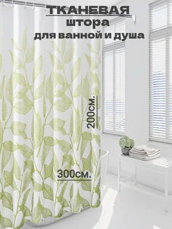 Широкая тканевая штора для ванной и душа 300х200 зеленая