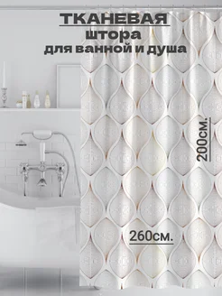 Широкая тканевая штора для ванной 260х200 с рисунком