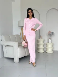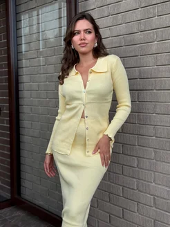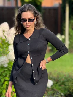 Теплый Костюм трикотажный женский лонгслив и юбка