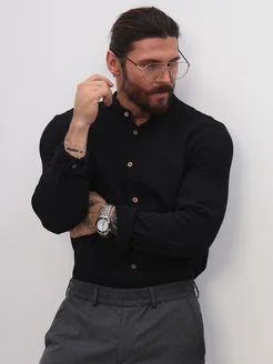 Рубашка муслиновая с длинным рукавом офисная воротник стойка