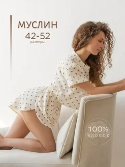 Пижама муслиновая с шортами и футболкой хлопок