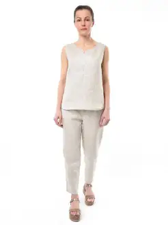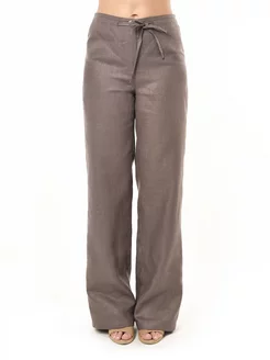Брюки льняные на молнии завязках кулиска широкие с карманами