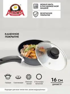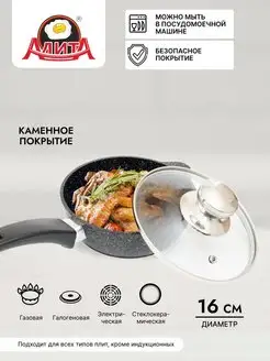 Сковорода с крышкой 16 см маленькая порционная для завтрака