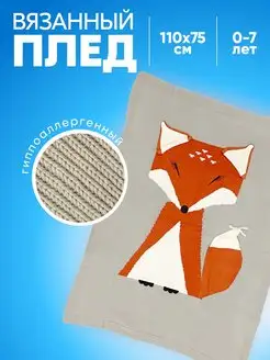 Детский вязанный плед Лисичка, цвет светло-серый, 110x75 см