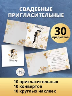 Пригласительные на свадьбу набор 10 шт (30 предметов)