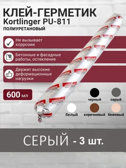 Герметик полиуретановый PU-811, 600 мл. Серый, 3 шт
