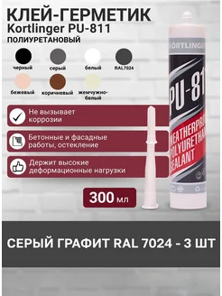 Герметик полиуретановый PU-811, 300 мл, серый графит, 3 шт