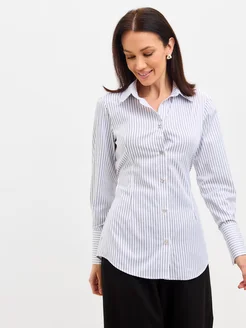 Приталенная рубашка в полоску с завязками в офис