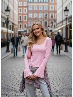 Лонгслив теплый кофта с рукавами клеш y2k