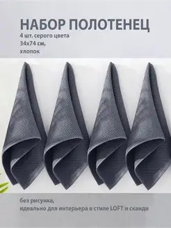 Набор полотенец вафельных кухонных 4шт 34×74 для рук хлопок