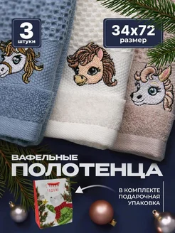 Набор полотенец вафельных 35х75см 3 шт новогодних с лошадью