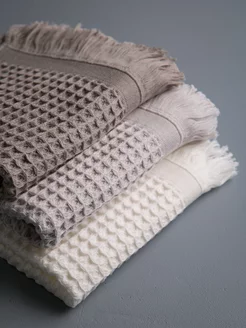 Полотенце вафельное с бахромой для рук и лица для кухни 3 шт