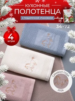Набор полотенец вафельных 34х72см 4 шт новогодних с лошадью